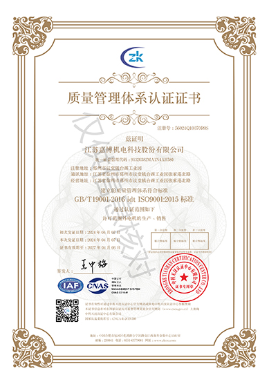 惠博电机不断更新经营理念,视质量为企业发展的生命线,建立健全的质量保证体系和研发体系,不断的超越自我。